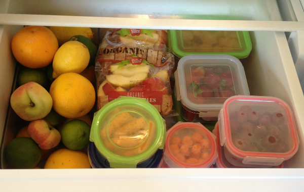 I noticed that if I buy the organic pre-cut apples, my kids will grab those when they are hungry first. I usually avoid the pre-packaged foods because of the waste, but at Costco yesterday these were the only organic apples they had, so I broke down and bought them. Immediately after getting home, both kids grabbed one and started snacking. That’s when I had an idea.